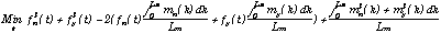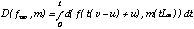 Soit d une distance entre deux points (nous utilisons l'approximation d(f(t),m(u)) = (fx(t)-mx(u))2+(fy(t)-my(u))2). Pour tout couple (u,v) de [0..Lf]2, on défini la distance D entre fuv et m comme la somme infinitésimale des distances entre chaque point de fuv et son point correspondant sur m :