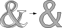 Avec notre technique, cette tâche devient très simple à réaliser : il suffit de redessiner sur les contours du modèle. Les copies d'écran suivantes sont réduites à 20%. L'écho des marques de reparamétrisation est montré en gris pâle. L'utilisateur commence par enlever les sérifs avec deux marques qui reparamétrisent les deux extrémités de la lettre (figure IV.5.2), puis des marques qui ajustent les contours plus précisément.