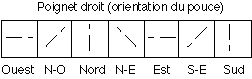 Figure VI.2.1 : notation de l'orientation du poignet.