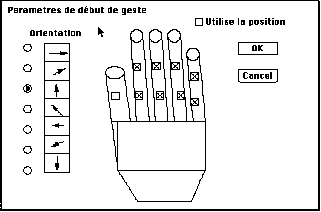Figure VI.3.2 : Spécification interactive des paramètres de début de geste dans l'application d'apprentissage de "grammaires" gestuelles.